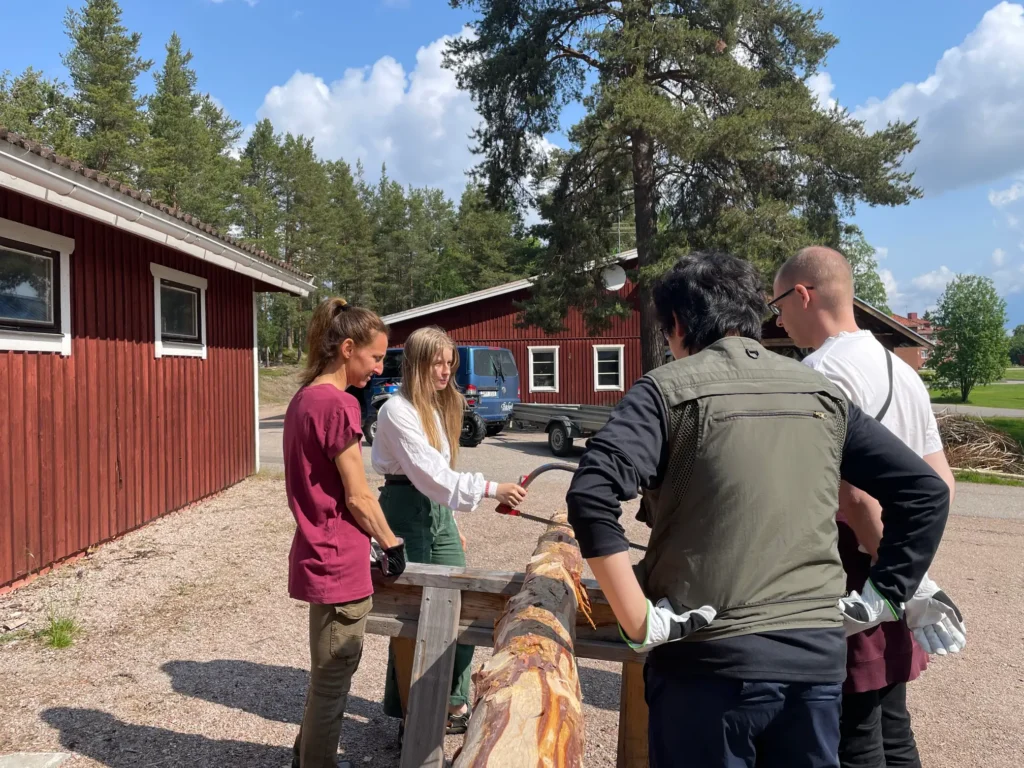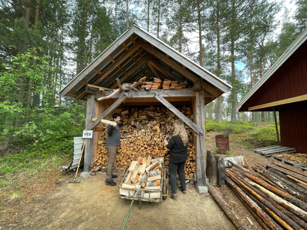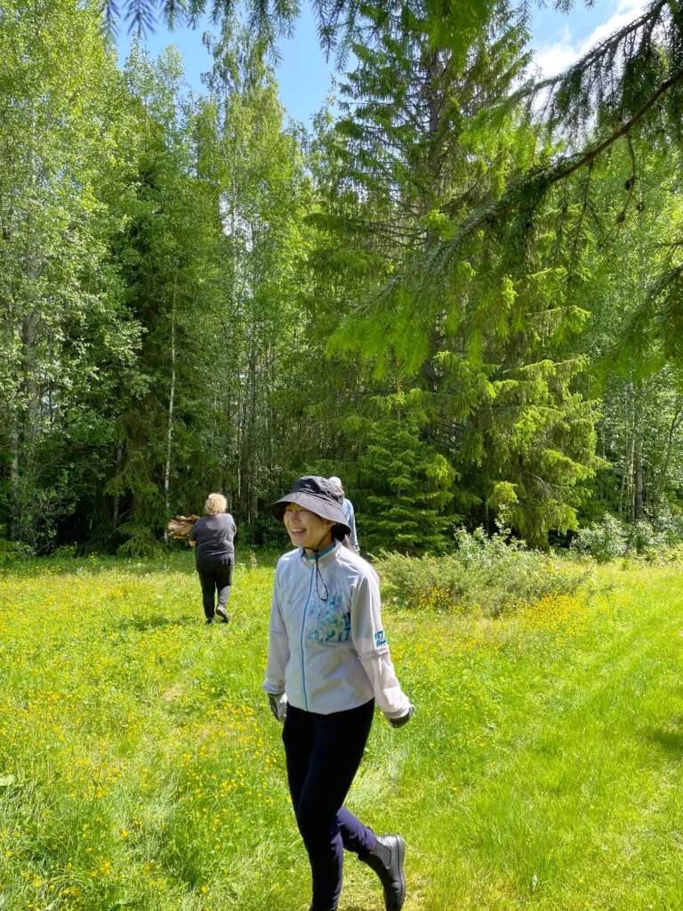 Eftersom skolan låg mitt i naturen, ägde majoriteten av volontärernas aktiviteter också rum ute i naturen. På lägrets första dag organiserade vi en 1,5 timmars vandring till det närliggande berget, och efter träningen gick några av oss till bastun. Bastu var definitivt en av arbetslägrets höjdpunkter, eftersom det var något ganska nytt för volontärerna—och de älskade att tillbringa sina kvällar där efter dagar fulla av arbete.