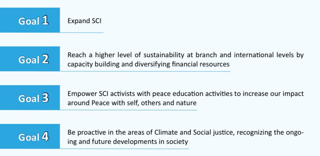 Planen önskar visa vägen för hur man kan bidra till att skapa ett mer fredligt och rättvist samhälle genom internationella volontärprojekt. Visionen är bland annat att öka medvetenheten om att vi finns, ha en ökad mångfald av projekt, uppmuntra till mer nätverkande och efter-läger aktiviteter som följer upp och kan locka fler att delta. Vidare uppmuntras att uppmärksamma aktiviteter som adresserar social rättvisa och klimatfrågan, då dessa frågor ofta tangerar våra kärnvärden.